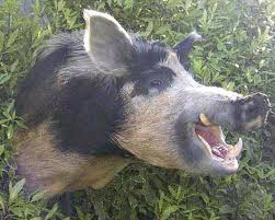 "You catch wild pigs by finding a suitable place in the woods and putting corn on the ground. The pigs find it and begin to come everyday to eat the free corn. When they are used to coming every day, you put a fence down one side of the place where they are used to coming.
